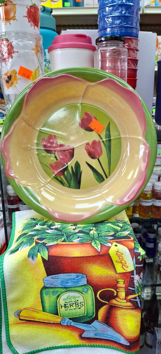 LARGE YELLOW-BASED MELAMINE PLATES